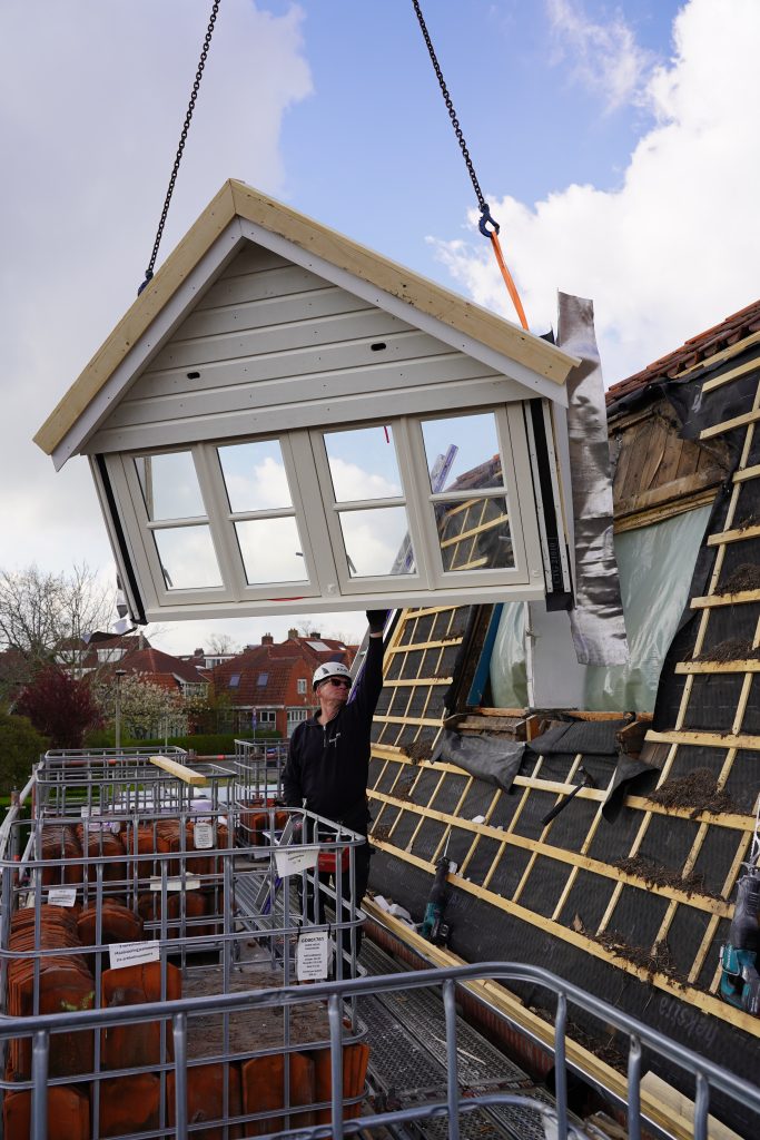 Een paar weken geleden zijn we gestart met de verduurzaming van 46 monumentale woningen aan de Bildtsestraat in Leeuwarden, in opdracht van woningcorporatie Elkien. Een prachtig project met een mooie samenwerking, waarbij Lont ons inschakelde om de dakrenovatie te realiseren. Hierbij komen er ook compleet nieuwe prefab dakkappellen op de daken.
