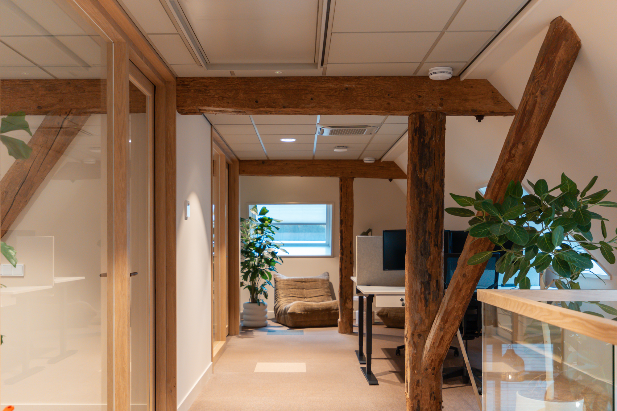Hoewel het oude kantoor ook al een inspirerende omgeving was, bood het onvoldoende werkplekken en de kantoortuin was met zoveel collega’s niet langer praktisch. Tegelijkertijd wil Hekstra ook een plek zijn die klaar is voor de toekomst: duurzaam, energieneutraal en flexibel in gebruik. Het opnieuw ingerichte kantoor biedt ruime werkplekken, moderne spreekkamers en plekken voor informele samenwerking. “We wilden graag een kantoor dat zowel praktisch als inspirerend is”, zegt Leon, duurzaamheidsmedewerker bij Hekstra. “Een plek die laat zien hoe we als bedrijf bouwen: gezond, duurzaam en toekomstgericht.”